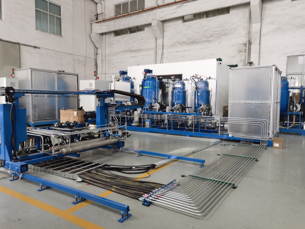 For polyurethane panels, the production line uses ahigh-pressure foaming system.