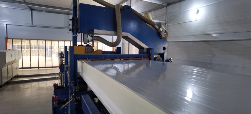 In modern factories, sandwich panels are produced usingcontinuous production lineswhere multiple machines operate in synchronization.